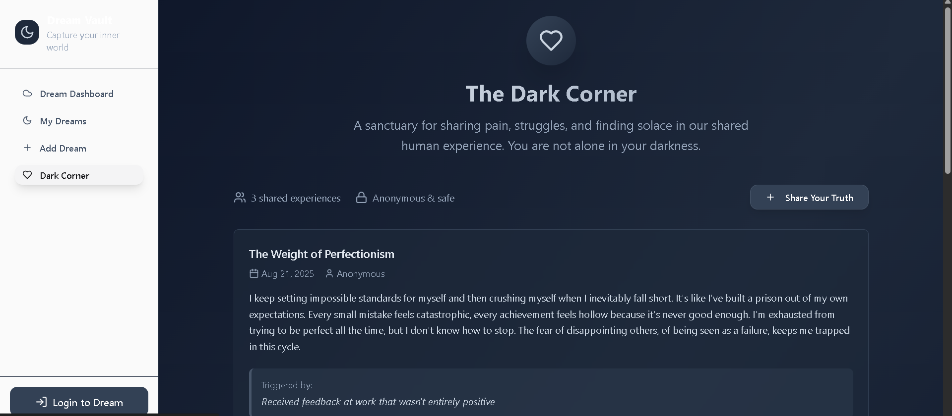 Anonymous Dream & Secret Sharing Platform Built With Prompt Engineering